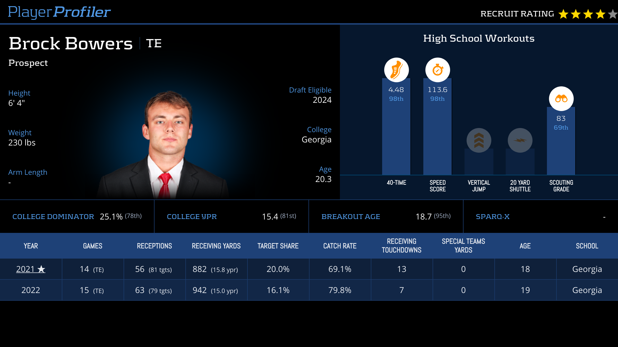 Checkout the latest stats for brock bowers.